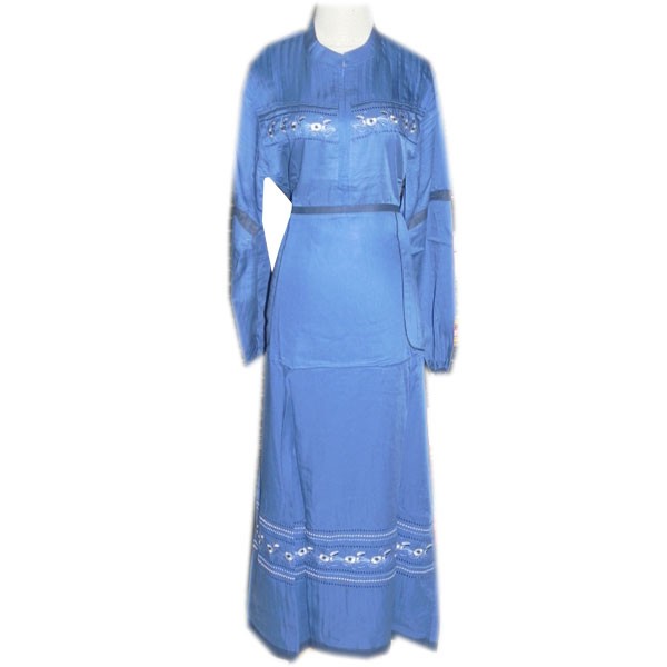 Gamis Muslimah dengan motif kombinasi yang indah.Didesign dengan resleting di bagian depan,saku depan dan bordir yang cantik serta tali pada bagian pinggang.